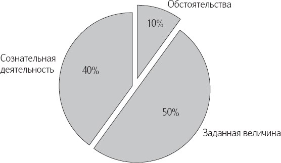 • Жизненные обстоятельства (circumstances), C = 10 %. Это и то, что вы можете изменить, и то, что вы не можете изменить, включая ваше окружение, в котором вы живете и работаете, семейное положение, работу, даже расстояние от дома до места работы, а также здоровье и достаток.