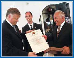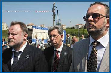 13. На торжественной церемонии открытия Мемориала – попечители и член Рабочей группы Программы слева-направо: В.Ю. Платонов, О.Ю. Атьков, Ю.Г. Черепанов