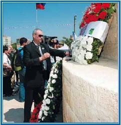 16. От ЦНС и ФАП к подножию кургана венок возлагает В.В.Бушуев