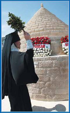 18. Епископ Михаил освящает икону, курган и возложенные венки