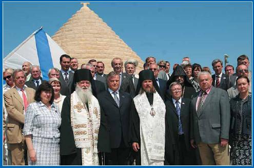 50. Памятное фото гостей и участников торжества у кургана. В первом ряду слева-направо: Н.В. Якунина, владыка Михаил, В.И. Якунин, владыка Марк, А.П. Торшин, Л.И. Матюхин, А.В. Громова; за ними: АА. Мусин-Пушкин, П.А. Орлов, М.Б. Пиотровский, Т.Ю. Петрова, А.А. Худокормов, B. М. Окулов, С.М. Хронопуло, В.В. Петраков, ВА. Богуслаев, В.В. Стефановский, П.В. Стегний, С.В. Лукша, C. М. Хронопуло, отец Гусан, Т.Н. Шихзаманова, Л.П. Соколова, О.Ю. Атьков, П.И. Кононенко, Ю.Г Черепанов