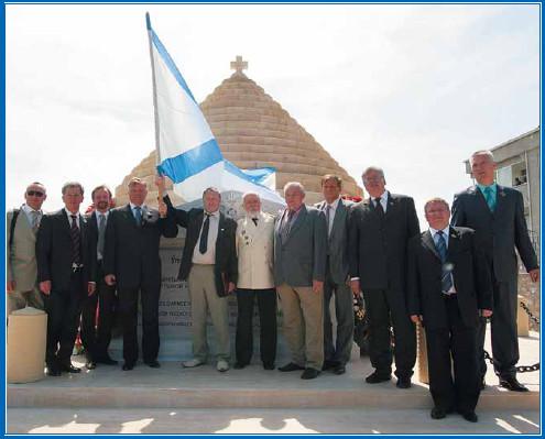 46. Андреевский флаг стал символом единения. У Мемориала стоят справа-налево: ГВ. Машталер, Н.А.Черкашин, С.И. Нелюбов, В.В. Стефановский