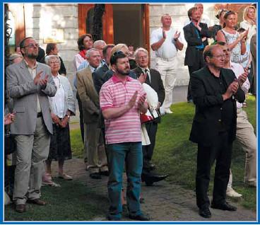 60. Замечательному пению хора и исполнительнице Татьяне Петровой аплодируют А.П. Торшин, С.Е. Щеблыгин, епископ Михаил, В.В. Петраков, Л.П. Соколова
