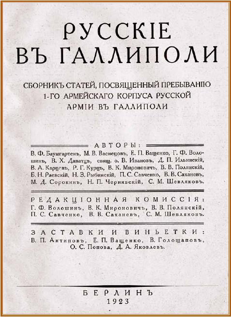 Сборник «Русские в Галлиполи» впервые вышел в свет более 80 лет назад в Берлине и сегодня является библиографической редкостью, доступной лишь специалистам в читальных залах некоторых библиотек. Простыми и безыскусными словами повествуется здесь о годе жизни Русской Армии на полуострове Галлиполи после изгнания из России. Знаменательно, что там, на берегу Дарданелл, в день окончания авторами своего труда и накануне отправки первой партии галлиполийцев в Европу – 22 ноября 1921 года – все сохранившие верность присяге создали Общество галлиполийцев. Оно, словно предугадывая начавшееся распыление Армии, продублировало структуру 1-го Армейского Корпуса, а впоследствии вошло в Русский Общевоинский Союз, созданный генералом П.Н. Врангелем в 1924 году. Так появление сборника предвозвестило создание общественной организации, первой, объединившей русскую эмиграцию. Председателем Общества галлиполийцев (ныне существует как его «продолжение» – «Союз потомков галлиполийцев») стал генерал-лейтенант В.К. Витковский, почетным председателем – А.П. Кутепов, а секретарем – капитан В.В. Орехов.