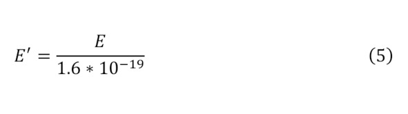 Further, from the calculations given, it is possible to determine the voltage, that is, the kinetic energy of the charges reaching the anode, from where their voltage (5) manifests itself, and since the value of the current density in the cathode itself (6) is known, depending on the ratio of this current density and the density of the outgoing charge, the percentage of charge output from the cathode can be found (7) or a kind of cathodic efficiency.