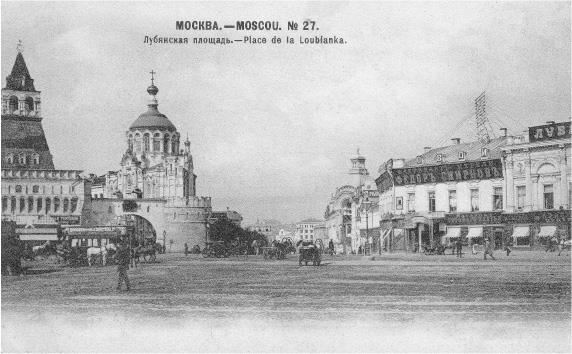 Лубянская площадь в Москве, ок. 1900 г. В 1926 г. она была переименована и стала называться площадью Дзержинского[4]