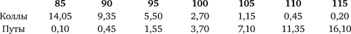Предположим, что имеются следующие опционы, срок действия которых истекает через два месяца, и что рыночная цена базового контракта – 99,00: