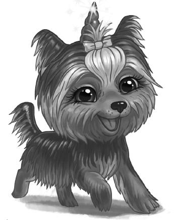 – Всем привет! – раздался у них за спиной звонкий голос. Молния с Блёсткой обернулись и увидели, как к ним торопится их подруга Звёздочка, бигль с голубым рогом.