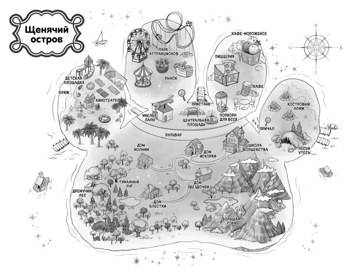 Подруги жили на Щенячьем острове, в удивительном месте, где повсюду – пологие холмы и зелёные луга, петляющие земляные дорожки и золотистые песчаные пляжи. Громчелай, город в центре Щенячьего острова, весь буквально искрился от магии. Потому что на острове обитали не обыкновенные собаки, а милороги! На голове каждого милорога рос один рог, как у сказочного единорога, и эти рога заключали в себе волшебную силу.