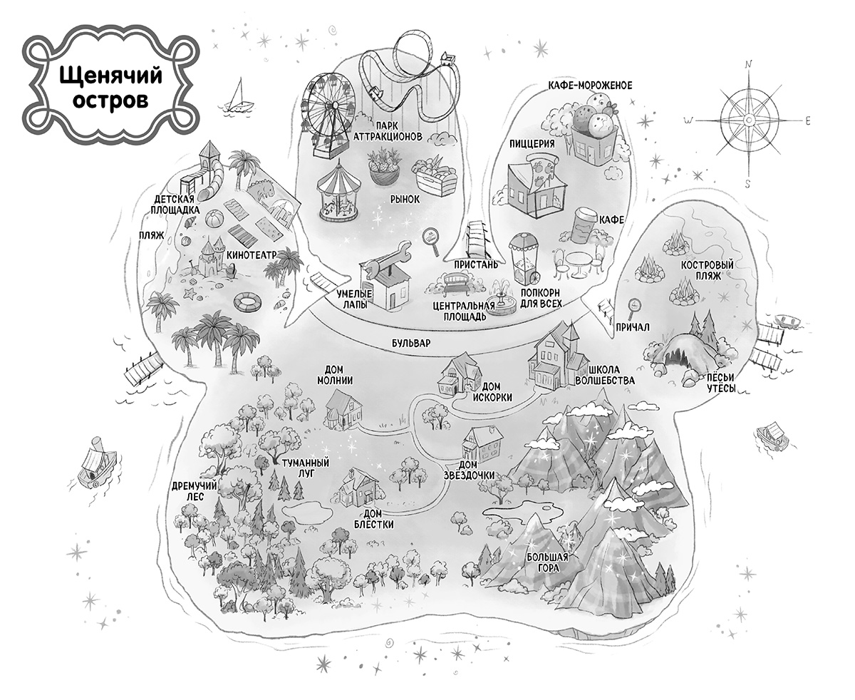 Пока подружки возвращались на свою сторону площадки, Блёстка огляделась по сторонам и всей грудью вдохнула свежий солёный воздух. С одной стороны от волейбольной площадки тихо плескались морские волны, набегавшие на песок, с другой – возвышались песчаные дюны, заросшие высокой травой. Лёгкий ветерок шевелил белую шерсть собачки. Блёстка вновь оглядела почти пустой пляж и подумала: «Как хорошо здесь у нас, на волшебном Щенячьем острове! Это самое лучшее место на свете!»