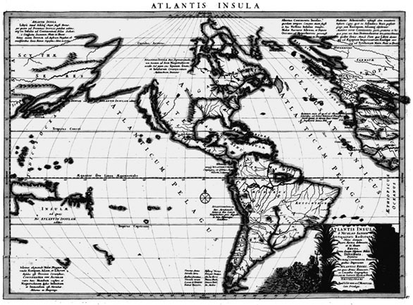 Испанский историк Франциско Лопес де Гомара{20} был первым, кто утверждал, что Атлантидой может оказаться Америка (1552). К такой же точке зрения склонялись Френсис Бэкон и другие авторые. В 1689 году французский картограф Сансон самоуверенно опубликовал карту Америки, на которой изобразил континент, разделённый между двумя сыновьями Посейдона{21}. С тех пор предпринималось множество попыток отыскать Атлантиду в Америке.