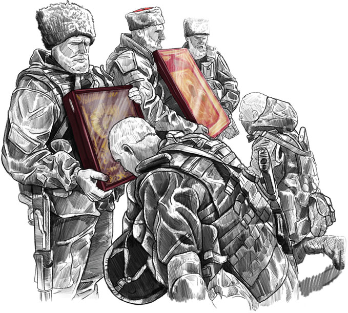 Первому двадцать, второму сорок, отец и сын,Русые русаки среднерусской тверской полосы.Цветное фото; «не рыдай Мене, Мати,Зрящи во гробе»: смерть была прежде.Оба неправильно держат свои автоматы.Ну кто их так держит.Аптечка говно, натирают берцы,У старшего уже поизношено сердце,У младшего условка за хулиганку.Ходили в дозор спозаранку,Сын чуть не споткнулся о мину.«Матери только молчи, а то всыпет ремнину».Пока ты дома ешь манго и пьёшь брют,Они за тебя умрут.Летняя степь цветущая, пасторальная.Ладно, чего там я, извини, забудь.А знаешь, в чём самая жуть?Им это нормально.«Здесь перемелено, здесь перемолото, «Градов» гром…»