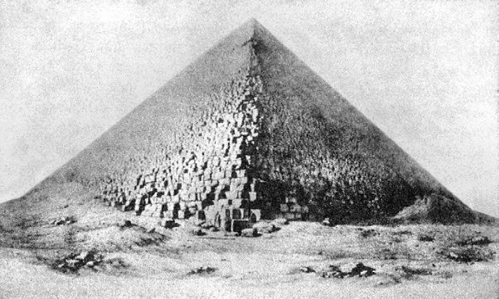 Необходимы немалые знания и опыт измерений, чтобы перенести параметры такой конструкции, как пирамида, с плана на местность. Египетские инженеры-архитекторы оставили убедительные свидетельства того, что они такими знаниями и опытом обладали. Средняя длина сторон великой пирамиды Хеопса в Гизе – 755 футов 9 дюймов в основании. Две стороны отличались от этой цифры не более чем на 1 дюйм, и два угла были построены с ошибкой в 3 или 4 минуты. Подобная степень точности едва ли могла быть получена с использованием канатов – обычных инструментов землемера. Известно, что применялись рейки, градуированные в кубитах, ладонях и пальцах (египетский кубит – чуть больше 20 дюймов, ладонь – 3–4 дюйма, палец – около ¾ дюйма). Предположительно для углов использовали большую деревянную «рейсшину» длиной 8 или 10 футов. Вероятно, для выравнивания основания пирамиды использовалось некое приспособление, позволявшее смотреть вдоль или параллельно поверхности спокойной воды. Как ее смогли так точно ориентировать – ведь ее ось практически совпадает с меридианом – неизвестно.