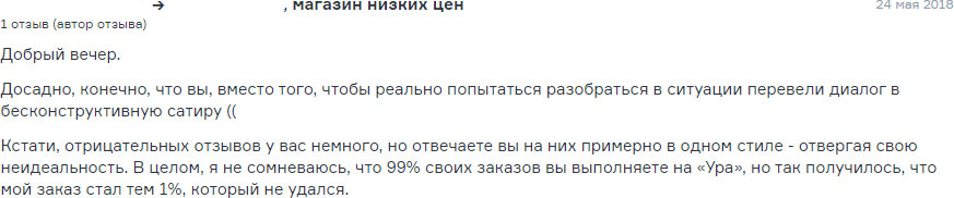 ✓ Переводите диалог в офлайн. В личной беседе легче решать вопросы. Кроме того, комментарная ветка на самом отзовике будет короткой и не выйдет в топ.
