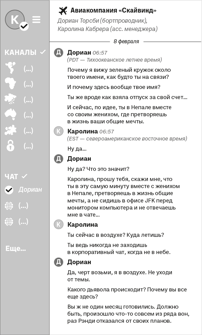 – Я собиралась сегодня же тебе написать, рассказать новости, – торопливо проговорила она, опережая Дориана. – Все произошло с такой скоростью, что мне нужно было самой это переварить, но только я не рассчитывала, что ты и сам догадаешься по зеленому кружочку возле моего имени в корпоративном чате. Я же знаю – Рэнди тебе нравился, хотя теперь ты пламенно желаешь, чтобы в реке Багмати у него отвалились яйца.