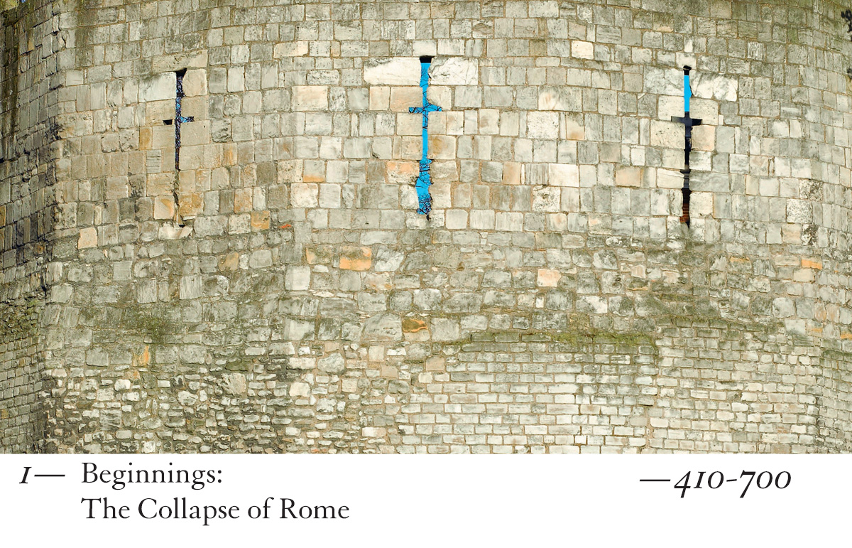 In 410, when the Roman army finally left Britain, neither England nor the English existed. The geographical area that is now England was part of the Roman province of Britannia and was occupied by British and Romano-British peoples. It took a long time for England to emerge from the ruins of Britannia. The first real king of England was Athelstan (924–39), who struck his coins with Rex totius Britanniae (King of all Britain). Athelstan inherited a rich, successful, populous kingdom ornamented with churches, cathedrals, monasteries and palaces. So, technically, the history of England’s architecture begins in around 900, but to understand how England looked then, and why, we need to start in 410.