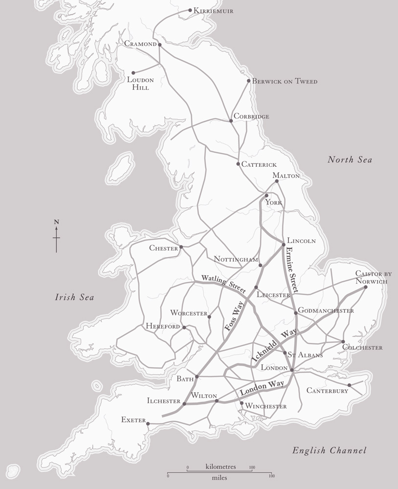 The Romans were in Britain for an extremely long time – if they had left in the year 2000 they would have arrived in the reign of Queen Elizabeth I. During the centuries of their occupation they built a very great deal: there were over 60 towns, places of administration, justice, manufacture, trade and latterly church administration. Some were large, with populations of 15,000 or more, at least as large as medieval towns such as Norwich. In some areas the countryside was littered with villas and the coast with a messy series of forts. Hadrian’s Wall, with its forts and towns, protected the Empire’s northern border. Internal fortifications, too, were mighty. Many towns were walled, and the largest of these, like York, was built almost impregnably in stone (fig. 1).