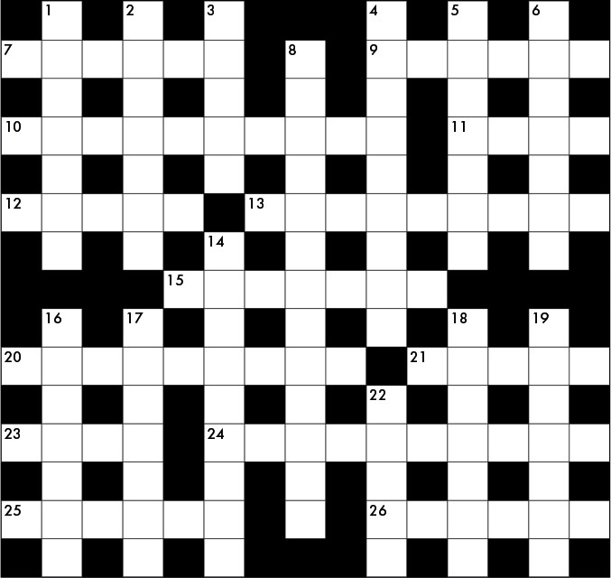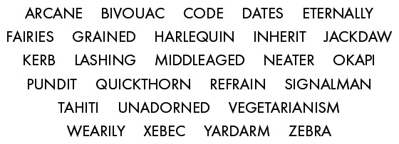В английском алфавите 26 букв. Перед вами список из 26 слов. Все они начинаются с разных букв. Вам нужно вставить эти слова в сетку кроссворда, приведенную ниже (желательно делать это карандашом). Слова могут располагаться по горизонтали или по вертикали.