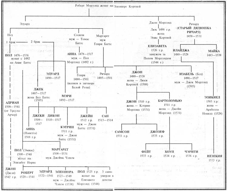 Король Ричард погиб в битве на Босвортском поле частично из-за предательства лорда Стэнли, но в большей степени из-за предательства лорда Перси Нортумберленда, «гордого Перси», чересчур промедлившего со сбором людей из северных областей на помощь королю, что было его долгом, – и в результате огромная йоркширская армия (а в ней воевали и люди Морлэндов) еще только двигалась к полю боя, когда битва началась и была проиграна.