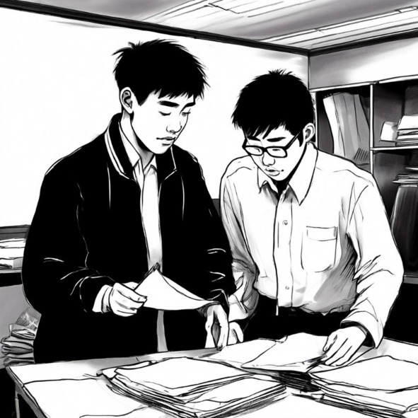 После того, как мы разобрались с проблемами гигиены в классе и спрятали все документы кредитной команды, мы с Гао Фэном немедленно отправились в кабинет учителя школы.