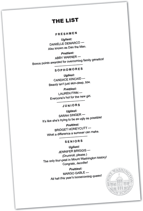 For as long as anyone can remember, the students of Mount Washington High have arrived at school on the last Monday in September to find a list naming the prettiest and the ugliest girl in each grade.
