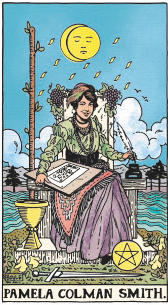 До последнего времени Памела Колман Смит не была широко известна. Многие детали ее биографии лишь предположительны. Но мы знаем, что она была театральной художницей, настоящим творческим гением, мистиком и ясновидящей. При этом Памелу Колман Смит лучше всего знают как художницу, создавшую в 1909 году иллюстрации для 78 карт Таро, которые стали известны как колода Райдера – Уэйта – Смит. Именно эта колода является самой знаменитой и узнаваемой по сей день.