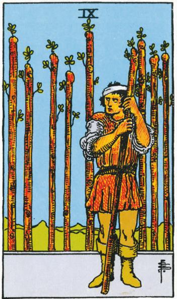 Карты Таро могут рассказать много интересных историй. Давайте для примера возьмем Девятку Жезлов.