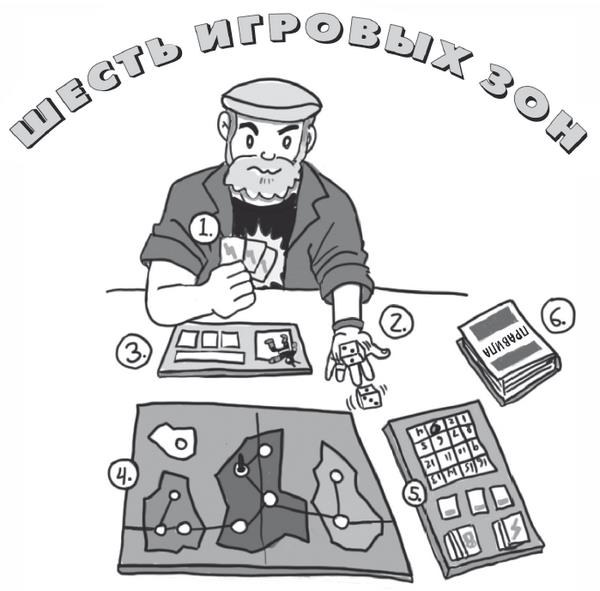 Памятки для игрока (которые можно расположить в зоне 3), правила, напечатанные на картах (зона 1), подсказки на игровом поле (зона 4) или даже краткая инструкция, напечатанная на обороте книги правил (зона 6), – все это избавит игрока от погружения в правила и не отвлечет от игрового процесса. К некоторым играм, например SeaFall или Betrayal Legacy, печатают отдельные буклеты с историями, погружающими игроков в «магический круг». Но в целом прерывание на книгу правил нарушает ритм игры. Вам как гейм-дизайнеру необходимо сфокусировать игроков на процессе и постараться как можно больше сократить их обращение к правилам.