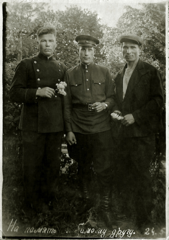 Андрей Коршунов (слева) и Коршунов Николай с супругой Анной Коршуновой (Ледяевой), 1950 год