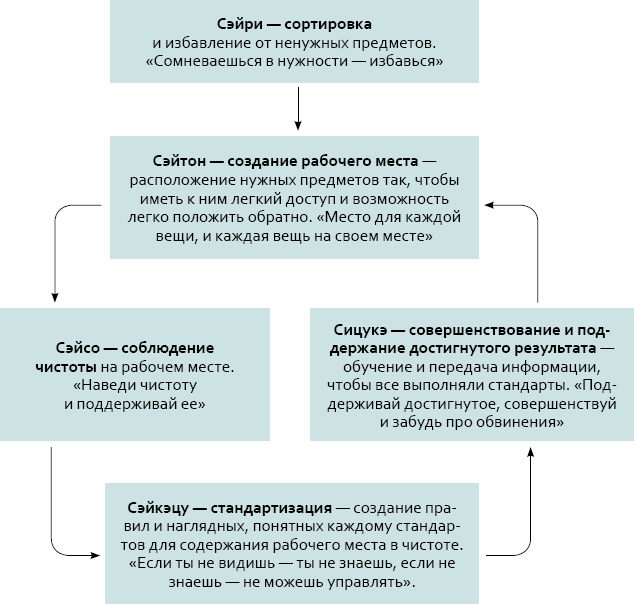 Упрощенно 5S – это система, при которой каждая вещь в офисе располагается максимально рационально и всегда возвращается на место после использования. Если следовать этому правилу – потери будут минимальны.