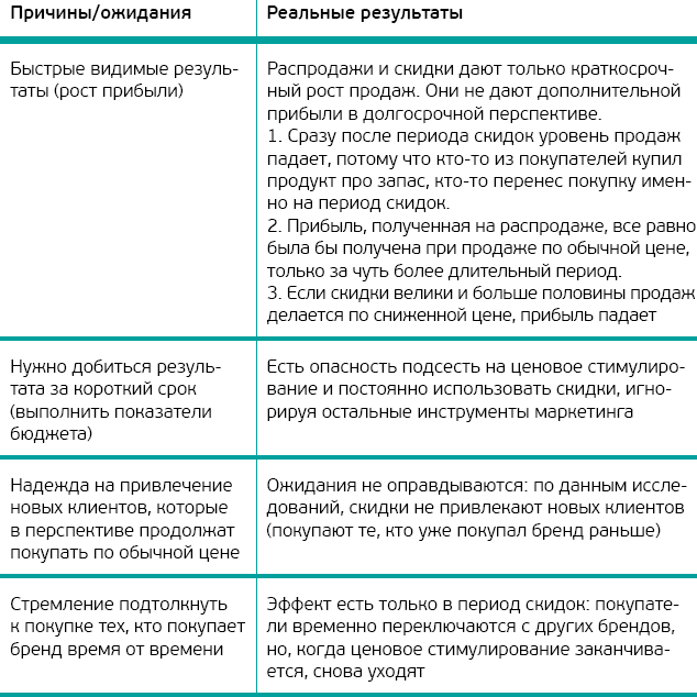 Ценовое стимулирование, продажи и доли рынкаЦеновое стимулирование подразумевает, что нормальная цена, установленная на бренд, меняется в ограниченном временном интервале. Ценовое стимулирование используется очень часто, на бренды регулярно устанавливаются скидки. Поэтому важно понять, в каких случаях ценовое стимулирование оправданно и полезно, а в каких случаях бесполезно или даже вредно для бренда.
