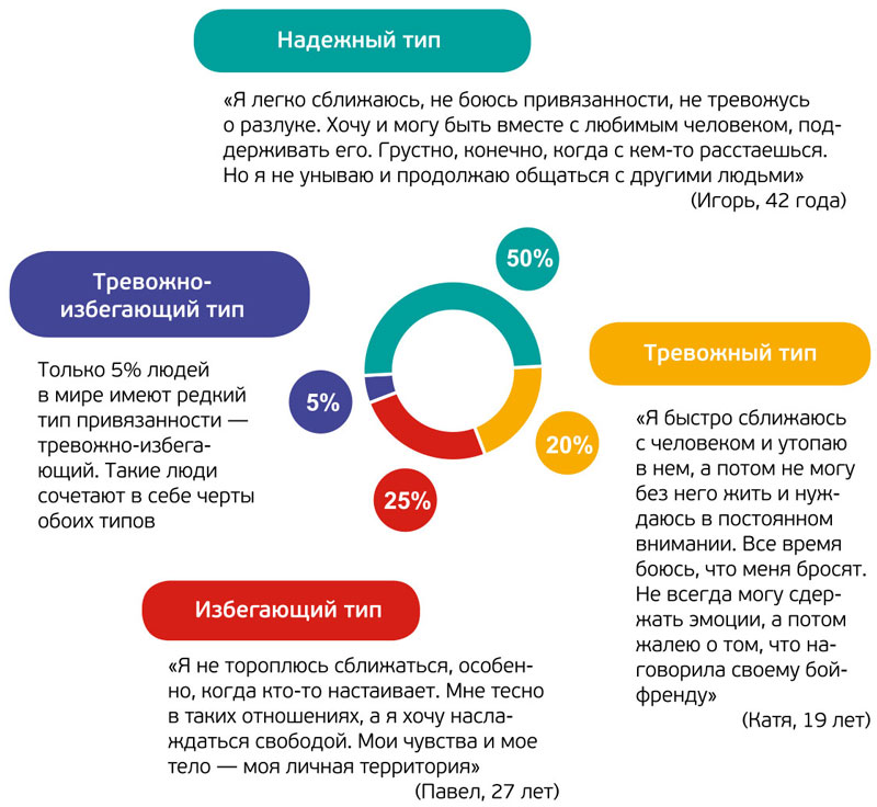 Но если вы знаете свой тип привязанности и тип привязанности партнера, то сможете достаточно точно предсказать свои реакции и реакции любимого человека в сложных ситуациях и конфликтах.