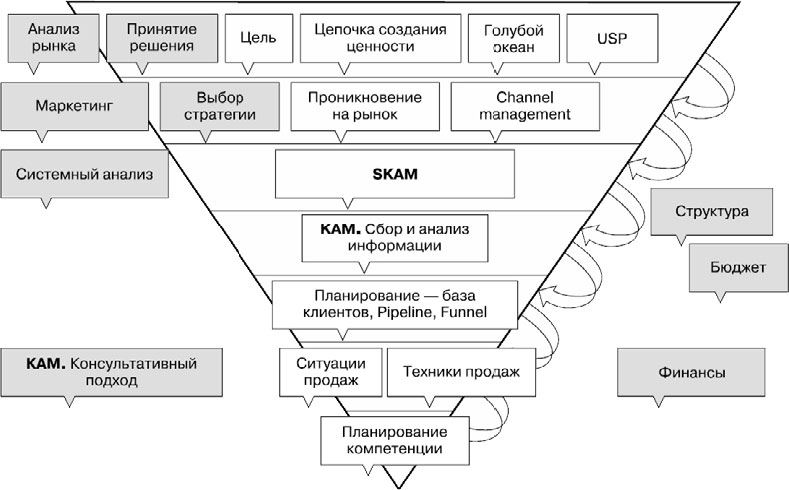Задача стратегического КАМ (SKAM) – создать управленческую оболочку, кокон, в котором операционный KAM будет работать. Человек, который находится в управленческой оболочке, и есть операционный KAM. Деление на операционных и стратегических KAM вводится для того, чтобы можно было четко разграничить области ответственности и влияния.