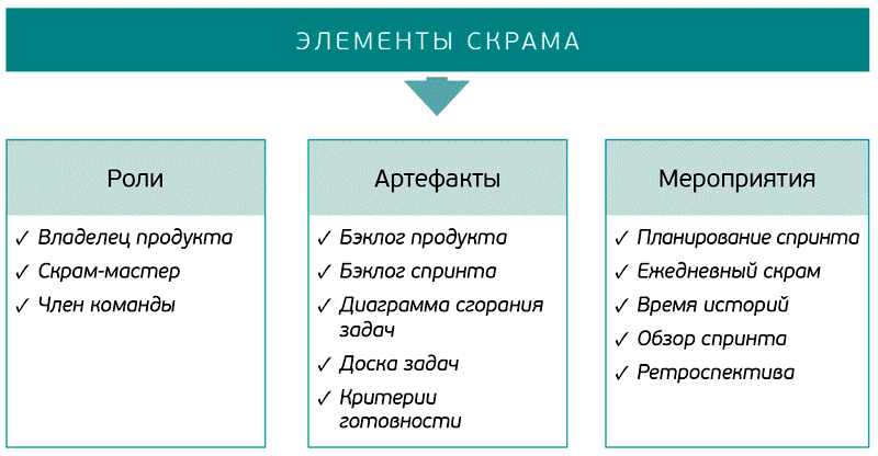 Элементы Scrum можно представить в виде схемы: