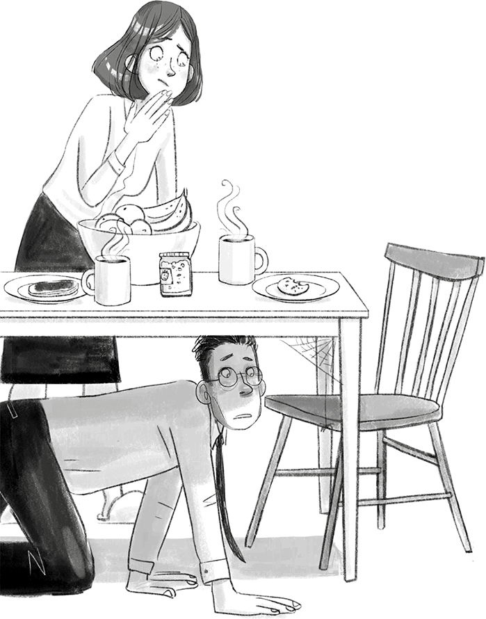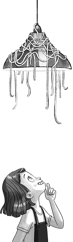 Я быстро осмотрела все шкафы и все выдвижные ящики. Олли решил, что это какая-то весёлая игра, и тоже решил поучаствовать. Он показал на потолок и сказал: