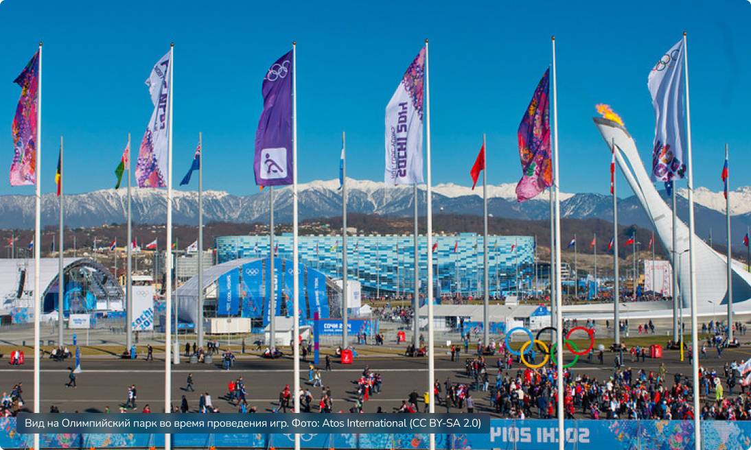 Олимпийские объекты – спортивные сооружения Олимпиады-2014, разделенные на горный и прибрежный кластеры.