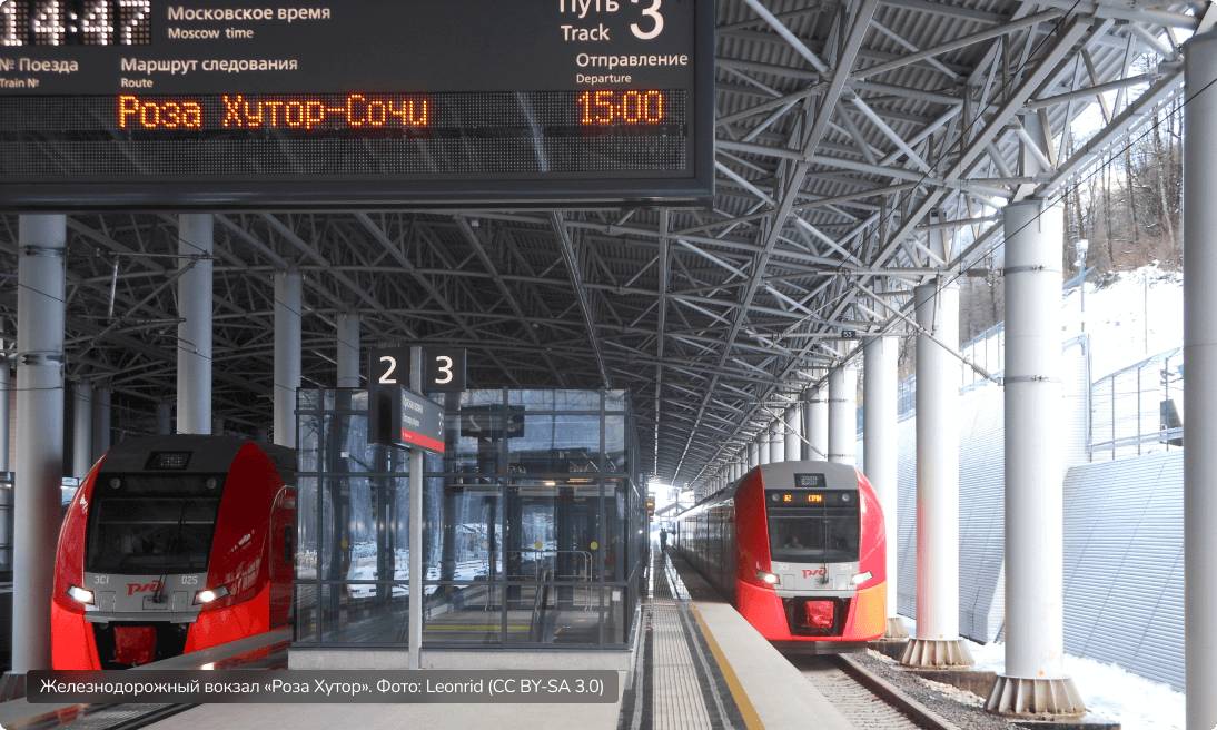 В Красной Поляне есть 2 ж/д станции – "Эсто Садок" и конечная «Роза Хутор». Если ваш отель находится в поселке Красной Поляны, то смотрите на карте, какая из этих станций ближе. Если планируете с вокзала отправиться сразу к курортам, то езжайте до конечной станции «Роза Хутор». По прибытию доступны бесплатные шаттлы до подъемников курортов.
