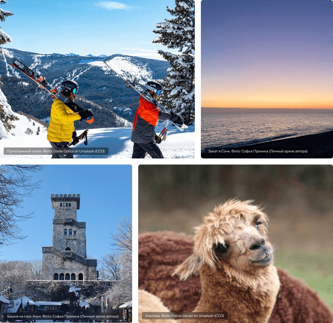 Сочи – это не просто курорт на берегу Черного моря, а точка притяжения туристов круглый год. И летом и зимой здесь есть чем заняться. В зависимости от сезона на одних и тех же локациях могут быть разные активности и достопримечательности. В этом путеводителе собраны активности для зимнего сезона и межсезонья с декабря по апрель, и речь идет не только о горнолыжном отдыхе. Мягкий климат региона также открывает возможности для отдыха у побережья, трекинга к водопадам и скалам.