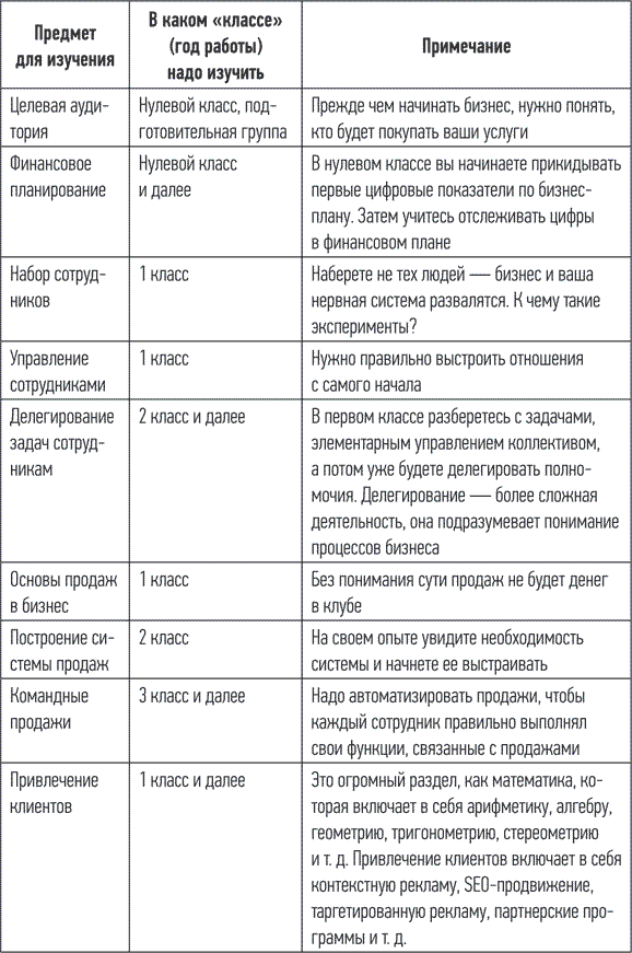 Не зная предметы, которые указаны в таблице 1, вы не сможете вести бизнес. Вот и вся правда. Вы же не можете, не зная английского, написать сочинение на этом языке? С бизнесом такая же ситуация: существует масса нюансов, формул и правил, которые надо знать. При кажущейся их простоте сотни новичков, открывающих бизнес, наступают на одни и те же грабли, которые больно бьют по нервной системе и кошельку.
