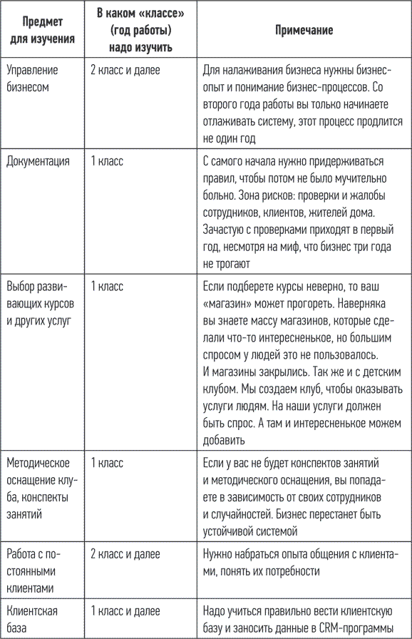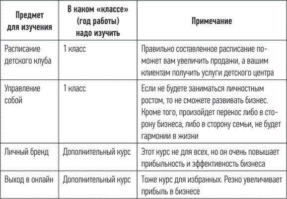 Есть предметы и в нашем бизнесе (их список я привела в таблице 1). Их нужно будет освоить. Что-то придется изучить сразу, иначе останетесь двоечником, а бизнес двоечникам денег не дает – таковы правила игры. Некоторые предметы можно изучить чуть позже. Это уже не начальная «арифметика», а что-то типа алгебры. Имеются также дополнительные курсы, которые помогут вам получить более глубокие знания по бизнесу, а значит, увеличить прибыль.