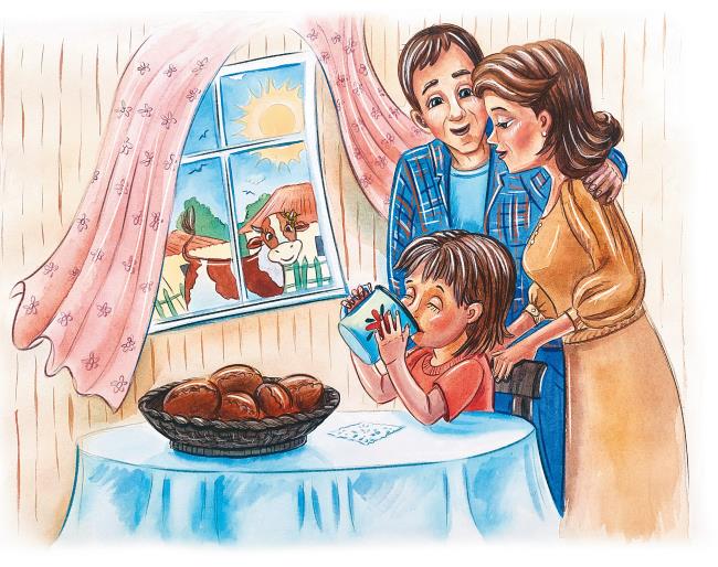Однажды на завтрак Кате дали молоко коровы Матильды. Когда девочка выпила его, лицо её чуть-чуть повеселело и она слегка улыбнулась. Родители заметили это и стали давать дочке молоко только коровы Матильды. С каждым днём Кате становилось всё легче и веселее, и наконец она совсем выздоровела. Родители были очень счастливы!