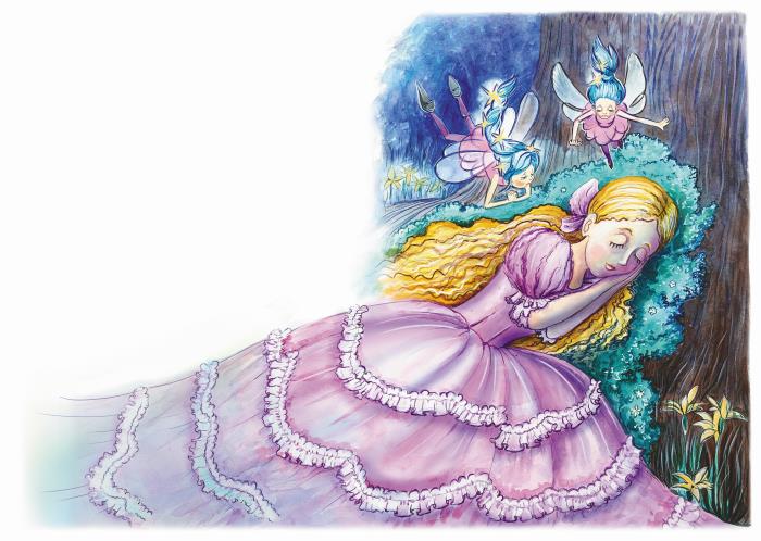 Спустя некоторое время по лесу пролетали две молодые феи. Они жили в чудесной Звёздной стране. Феи спустились на землю и увидели спящую девушку.