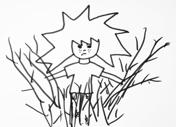 Однажды сёстры Настя и Соня вышли на прогулку за ворота. Обычно они гуляли по дачному участку, он у них огромный. Но сегодня девочки решили пойти в сторону деревенского пруда. Возле этого пруда рос большой малиновый куст. Настя подошла к нему и уже хотела полакомиться спелыми ягодами, но тут Соня сказала: «Ой! Кто здесь?!» Кусты зашевелились, и оттуда вылезла…