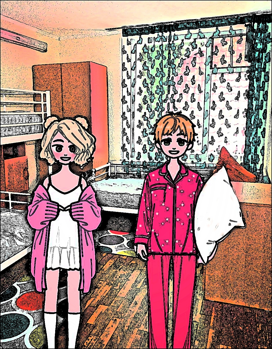 За такими разговорами ребята дошли до своей комнаты, а потом девочка, взяв свою щётку и пасту, полотенце и мыло, отправилась в душевую комнату. В каждой комнате была своя ванная комната и туалет. Закончив с гигиеническими процедурами, Женя, взяв Пашу отправилась в общую комнату. Там были всевозможные настольные игры, телевизор, книжные полки и ящики с игрушками. Друзья взяли одну из игр, у них оставалось ещё полчаса до завтрака. Доиграть ребятам не удалось, вожатая окрикнула их и велела строится. Собрав всё в коробку и положив её на место, Женька и Паша встали в строй. Дождавшись ещё пару ребятишек, они всем отрядом отправились в столовую.