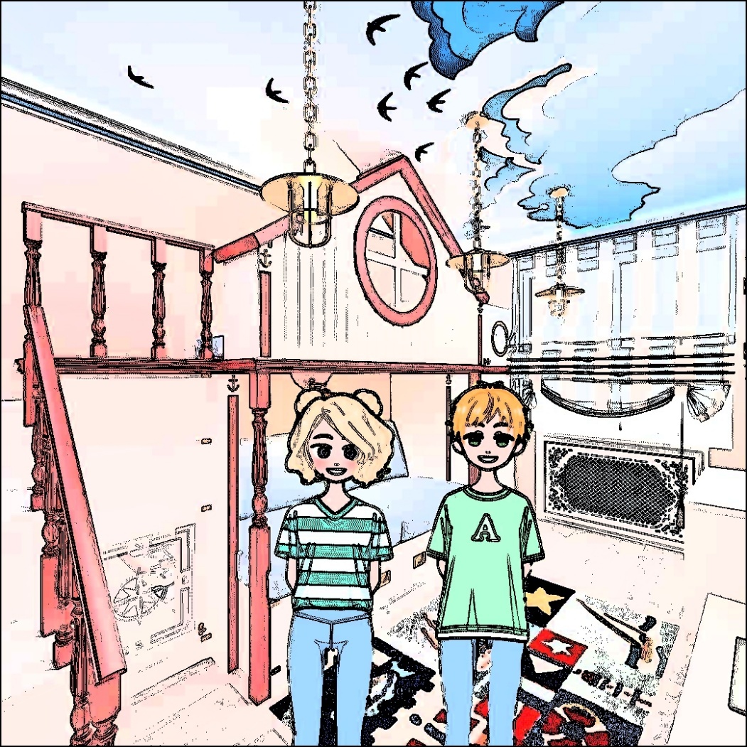 – Вот это да… – только и сумел промолвить мальчик. От зрелища захватывало дух. Мало того, что комнаты была огромна по своим размерам, так там ещё был спорт комплекс, совмещённый с игровым: лесенки, лазалки, канаты, горка, качели и даже гамак. Кроме того, огромная двух этажная кровать, на первом этаже которой был небольшой тайный уголок с книжным шкафом ( пока пустым ) , письменным столом и полочками для всякой всячины, а так же подвешенное к опоре кресло, такой величины, что в нём можно было спать.