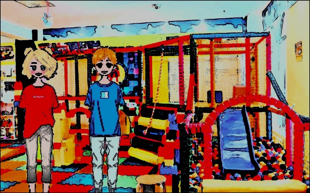 Наскоро позавтракав семейство отправилось в город. Остановились перед большим торговым центром, перед входом и Жене, и Паше завязали глаза. А когда наконец развязали, перед их взором открылся огромный развлекательный центр.