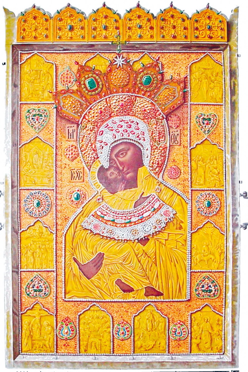 Владимирская Богоматерь в полном драгоценном окладе. Рисунок Федора Солнцева из издания «Древности Российского государства», 1846—1853