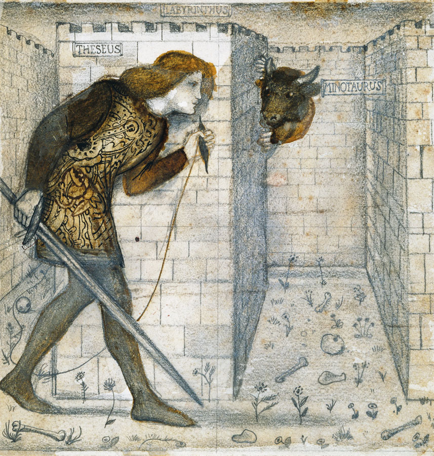Эдвард Берн-Джонс. «Тезей и Минотавр в Лабиринте». 1861. Художественный музей и галерея Бирмингема