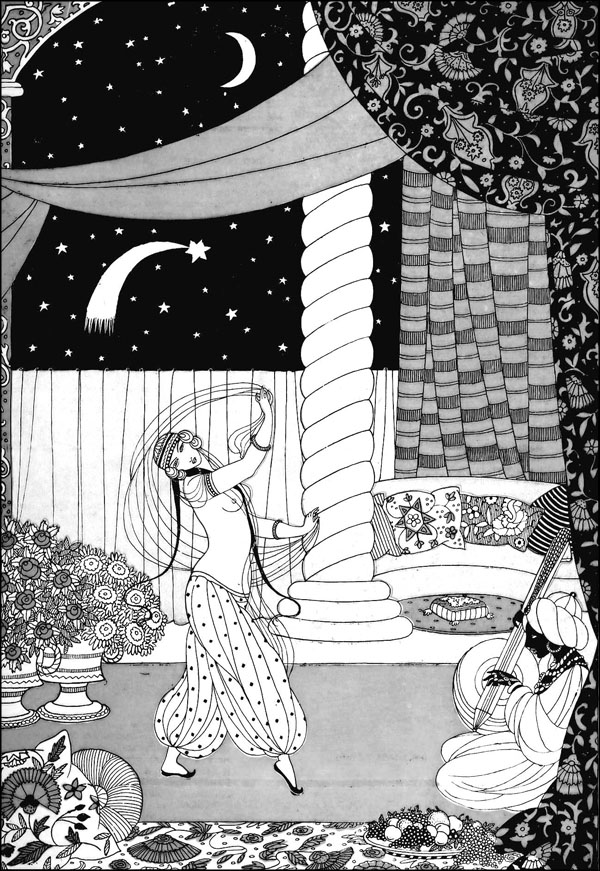 Ибрагим, у которого глаза были зорче, уже увидел девушку. Она сидела по ту сторону двух светильников, кажется, под нею тоже был коврик, а может, толстая циновка; вся закутана в черное, с черным покрывалом на голове и с непрозрачным чарчафом[2] на лице, девушка воспринималась как часть этого темного, затхлого пространства, точно какая-то странная окаменелость, призрачный темный предмет без тепла, без движения, без малейшего признака жизни.
