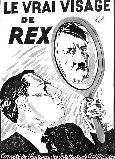 «Вождь международного фашизма» бельгийский аристократ, доктор права Леон Джозеф Мари Игнас Дегрель. В 1935 г. создал партию «Front Populaire» («Народный Фронт»), которую называют движением рексистов